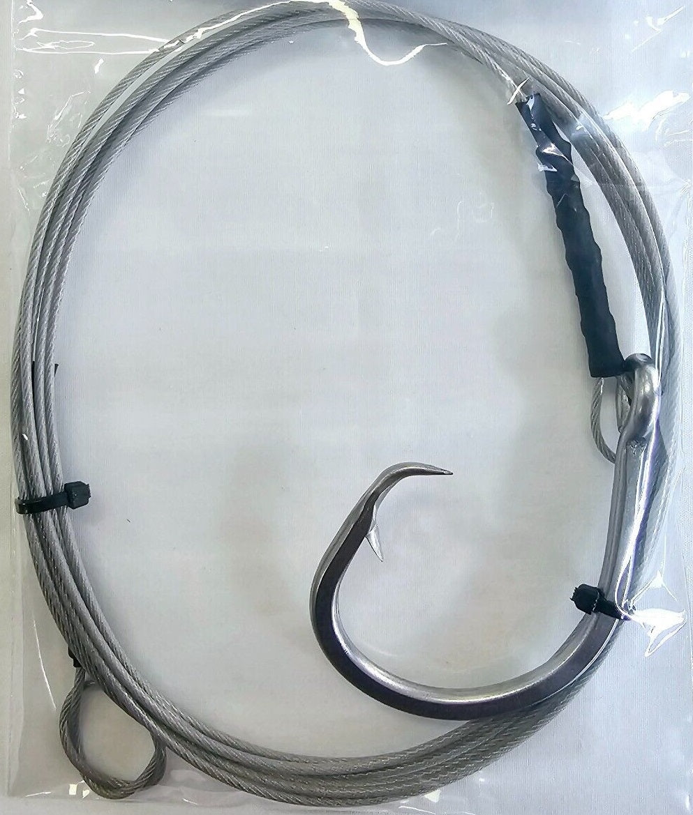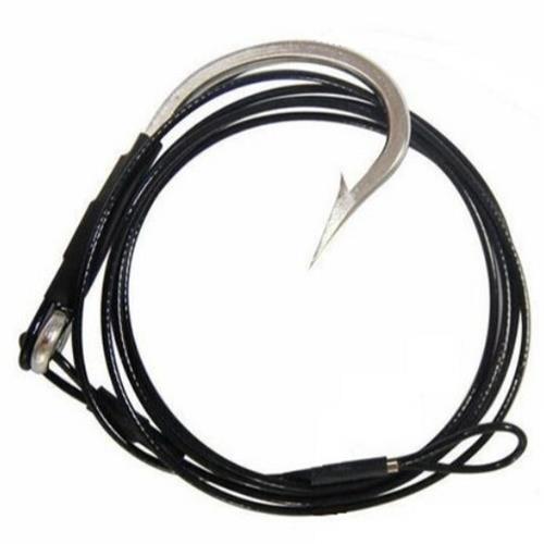 Catch big sharks with Hook'em Fishing's custom made shark rigs. Featuring a quality SINGLE stainless steel game fishing hook crimped onto 3m long black nylon coated forty-nine strand stainless steel fishing wire, shrink wrapped for ease of handling.