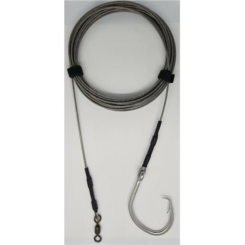 The Bay Boss Bay Shark Trace Wire features a stainless steel wire with a nylon coating, (Black, Clear or Red) to ensure that fish with sharp teeth can’t bite through your line. It is ideal for Sharks. Offset Forged Mutsu Circle Hook is attached to the wire trace by 2 x Copper Double crimps each end. The rig is ideal for both live or dead baits. The BAY BOSS Shark Trace Wire is absolutely essential if you want to catch yourself a feed of flake, or just want to catch and release one.